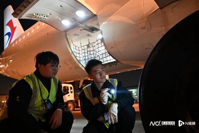 飞机来来去去,旅客走走停停,每个人脸上都洋溢着喜悦。2025年春运期间,东航国产大飞机C919首次服务广东春运市场。在每次飞机停稳后,是他们在飞机过站过程中,抓紧每一分钟努力工作,保障C919客机起落安妥,运行正常。