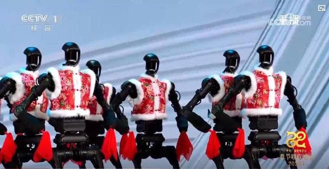 在今年春晚的创意融合舞蹈《秧 BOT》中,16个人形机器人H1成为一大亮点。