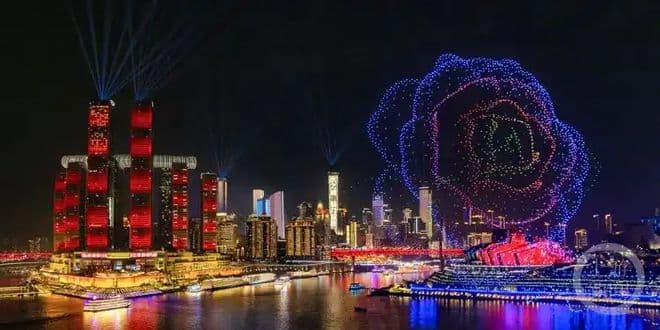 1月28日除夕夜,重庆“两江四岸”上演了一场无人机灯光秀,吸引不少市民、游客前来观赏,共同迎接农历蛇年的到来。当晚,无人机编队飞行,在空中变换出各种图案和文字,为观众带来一场“光影盛宴”。