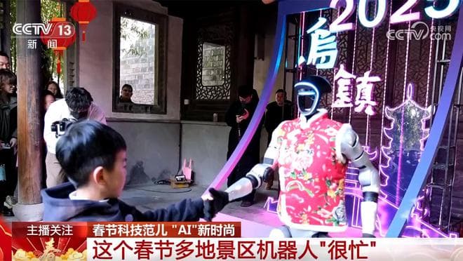 此外,多地景区还出现了各种有趣的机器人。在北京厂甸庙会,游客们能看到穿上红马甲的机器狗和拜大年的机器人;在江苏淮安板闸遗址公园,游客可与机器人互动;浙江金华之光文化广场科技馆的机器狗“笨笨”穿上节日盛装同小朋友“拜年”;浙江嘉兴乌镇景区内,机器人与小朋友握手互动,还有拜年表演。北京举办的首个“AI 庙会”更是打造了上百处人工智能场景,机器人乐队表演、仿生人版白娘子舞蹈、机器人京剧表演和川剧变脸等节目吸引了数万游客,机器人还能做糖人、调酒、做甜品,让人们近距离体验到科技的魅力。