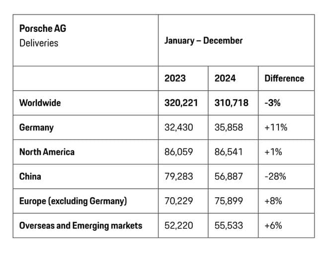 据IT之家此前报道,保时捷2024 年全球交付 310718 辆汽车,同比下滑 3%。保时捷 2024 年在中国市场的交付量为 56887 辆,同比暴跌 28%。