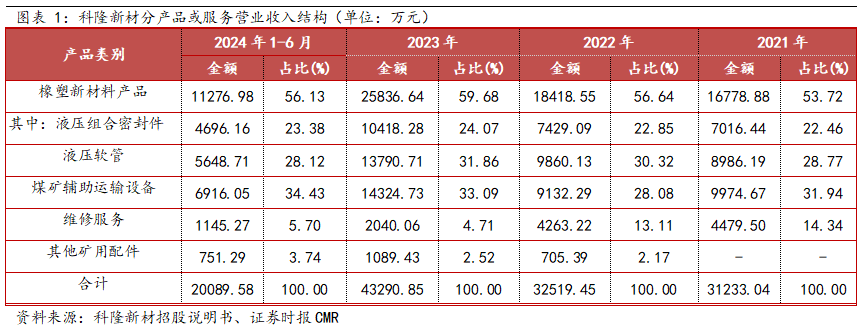 陕西科隆新材料科技股份有限公司(以下简称“科隆新材”或“公司”,代码920098.BJ)成立于1996年,主营业务为液压组合密封件和液压软管等橡塑新材料产品的研发、生产和销售以及煤矿辅助运输设备的整车设计、生产、销售和维修。