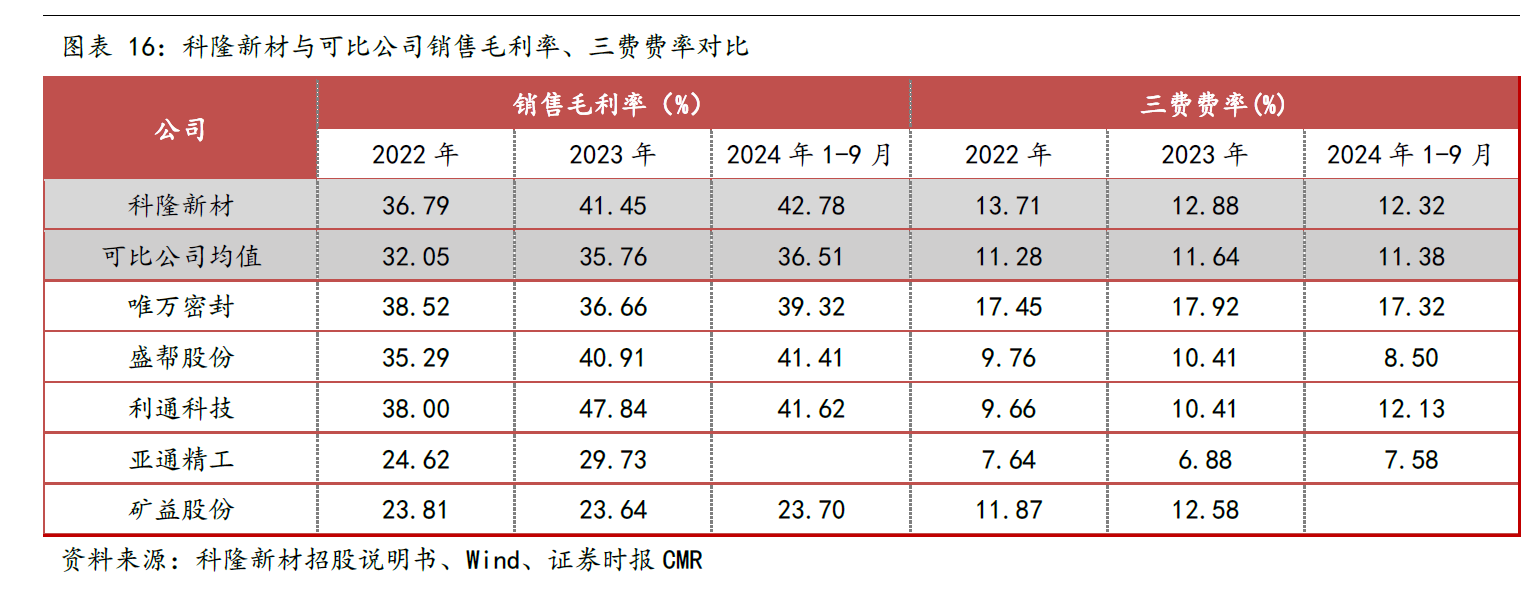 2021年至2023年、2024年1—9月,公司销售毛利率保持较高水平;2023年,公司销售毛利率达到41.45%,创过去3年最高水平,2024年1—9月,公司毛利率继续上升至42.78%。