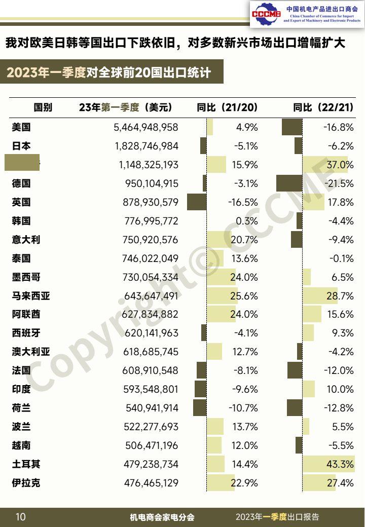 ❖本文为《2023年中国家电(白电)一季度出口深度分析&报告》完整版,敬请阅读。欲下载报告完整版或了解全球其他主要市场/国别出口情况、重点产品出口走势的朋友,欢迎联系本文作者。