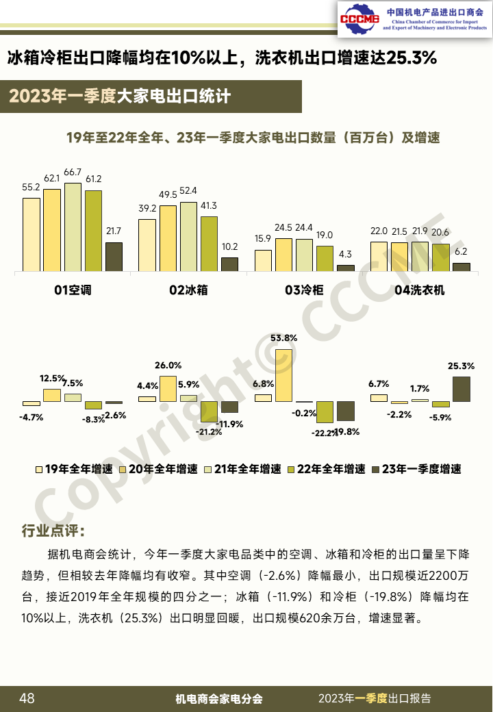 2023年家电出口承压前行 | 2023年一季度中国家电(白电)出口深度分析&报告