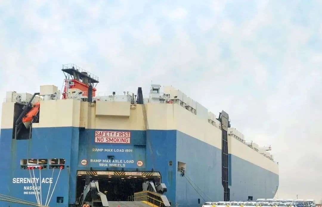 700辆企业自主生产的新能源汽车及25辆大型纯电动客车已搭乘大型汽车滚装船发往海外。