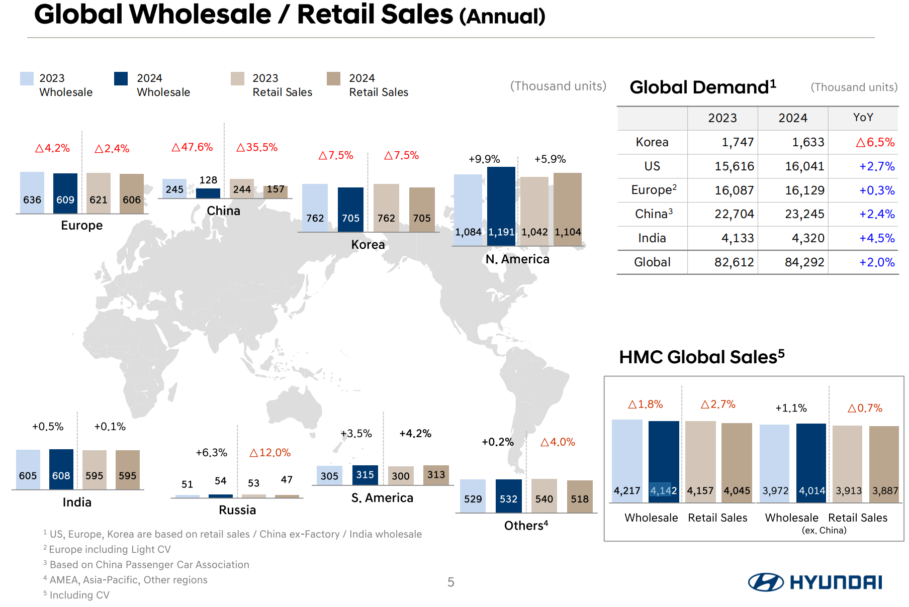 在全球车市竞争更趋严峻的当下,现代汽车为2025年定下“批发销量目标417万台,同比增长0.8%,营收增长3%-4%”的年度业绩指引,对业绩指标增幅的预期更趋保守。