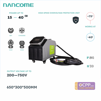 15 KW-40 KW电动汽车便携式充电桩商用GB/T CCS 2 ChadeMo直流快充220 V-380 V电动汽车充电器移动