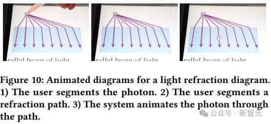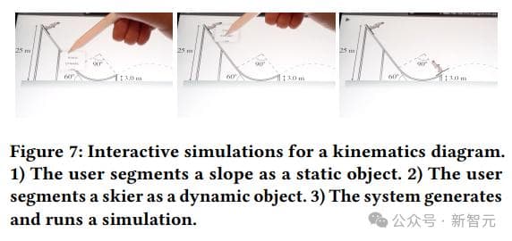 该系统可以支持各种类型的模拟,如牛顿运动、光学、电路和循环动画,并通过简单的创作过程,用户可以选择图表中的特定对象进行分割,操纵分割对象,并调整参数值以动态与模拟结果互动。
