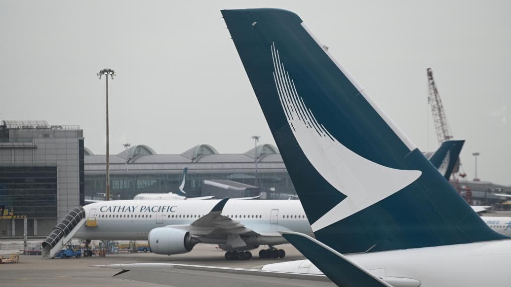 国泰航空的飞机停靠在停机坪。视觉中国 资料图