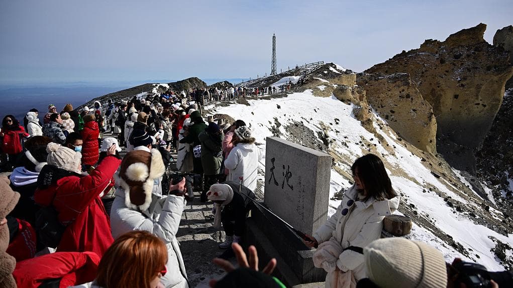 2023年2月9日,吉林延边,长白山美如画,吸引众多游客观光。视觉中国 资料图