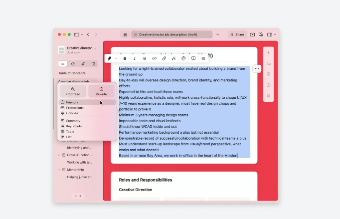 除此之外,还能一键总结归纳、对文本进行校对,和针对用词和文本结构提出建议。