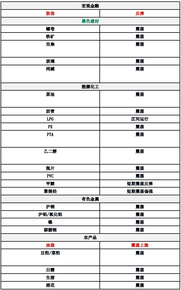 LPG。原油端价格施压之下国际市场震荡偏弱,但进口成本的走弱使得PDH毛利略有修复。PDH下旬仍有装置复产,支撑国内化工需求稳中偏强。燃气需求开始向好,国产气外放压力有限,价格维持区间震荡。原油压力带动盘面基差走阔,自身下行驱动有限,预计区间运行为主。