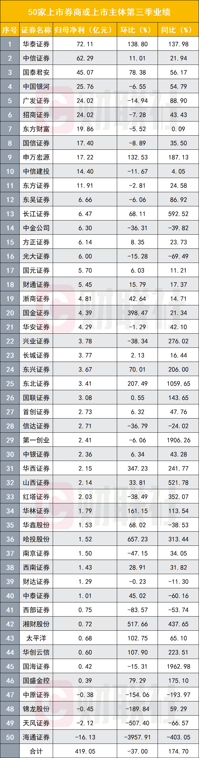 50家券商股业绩亮相,四大特征显现,第三季是券商的“好时光”