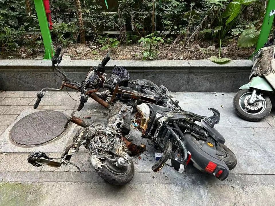 电动车燃烧后残架。图源:时代周报记者 王晨婷/摄