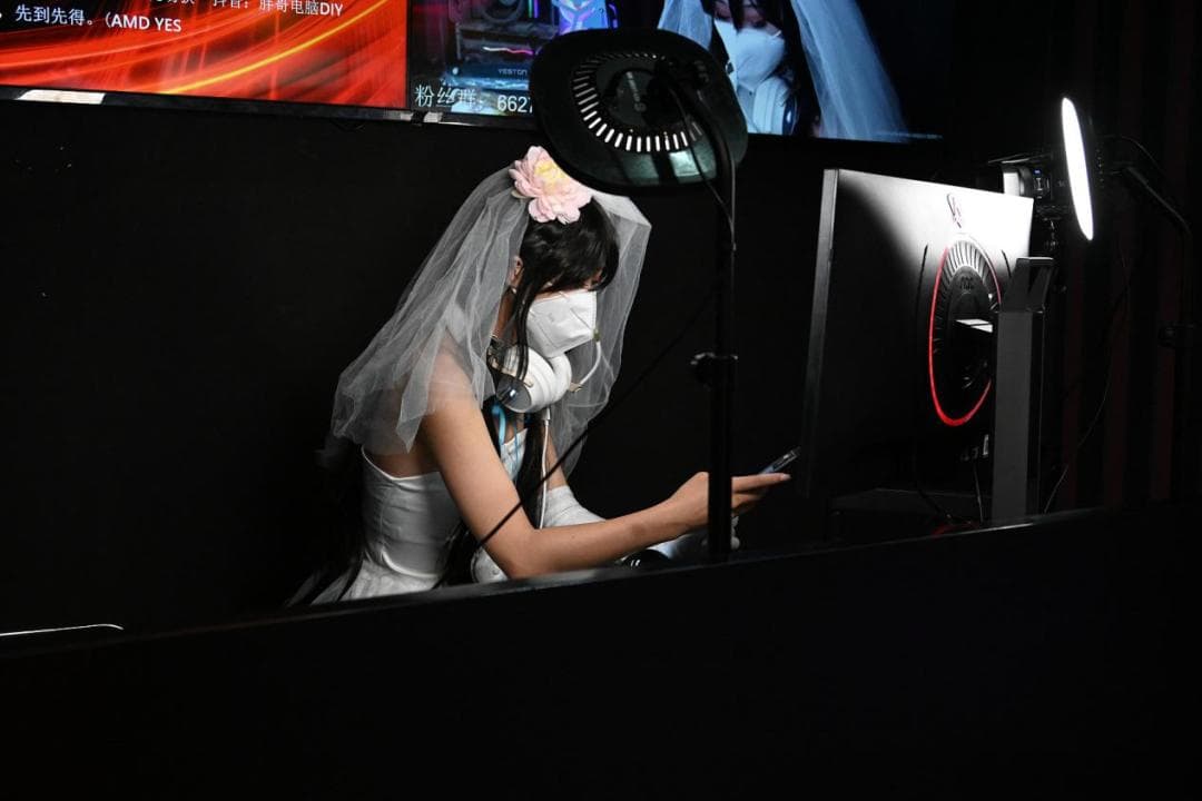 ● ChinaJoy上,一位游戏主播正在直播。图文无关。图源:视觉中国