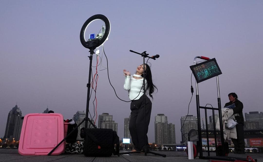● 2021年,河南郑州,一名主播在寒冷天气下进行直播。图文无关。图源:视觉中国
