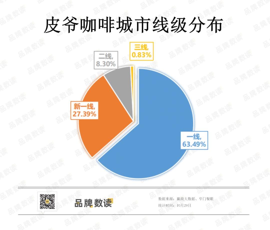 数据显示皮爷商场门店占到总数的约70%。据赢商大数据显示,在27城5万方以上代表性购物中心中,皮爷咖啡在华润万象系的购物中心落店最多,其中万象城与万象汇的门店数占比超过了36%,入驻龙湖天街的门店数也超过了20%。
