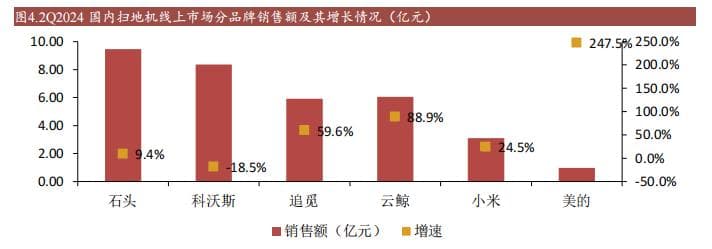 二是有限的市场规模下,随着扫地机器人供应链逐渐成熟,入局厂商持续增多,行业竞争只会更加惨烈。以美的为例,历经多年发展的美的从全国高线城市到乡镇市场所形成的强大线下渠道优势,既是扫地机器人企业探索第二曲线时的阻力,也是2024年Q2美的扫地机器人增速超2倍的原因。在当前电商平台推广成本持续上涨、投产比下滑、价格战升温背景下,一旦美的凭借线下渠道优势持续发力,未来是否会抢下更多市场份额呢?