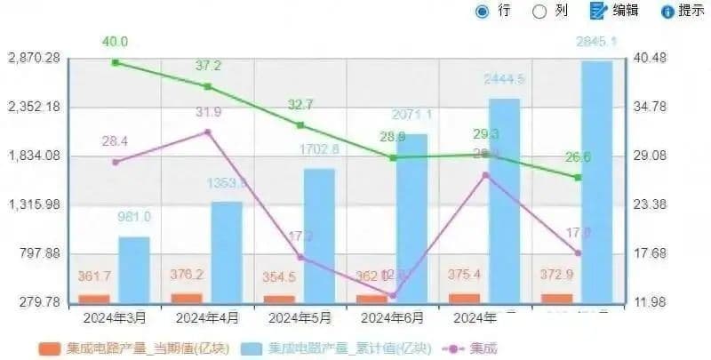 截至2024年8月,中国已生产2845.1亿块芯片同比增长26.8%,日均产量高达11.85亿块。