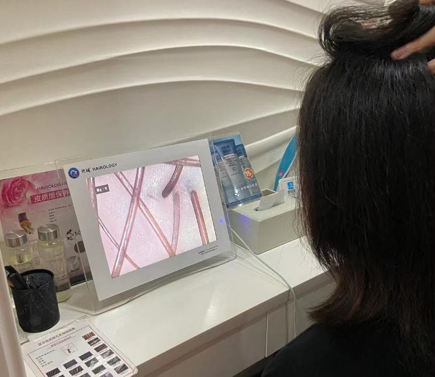 通过头皮检测仪的放大处理,可以清晰地看到头皮、毛囊、头发、发干的健康状态,头发稀疏、毛囊萎缩等状况一目了然。