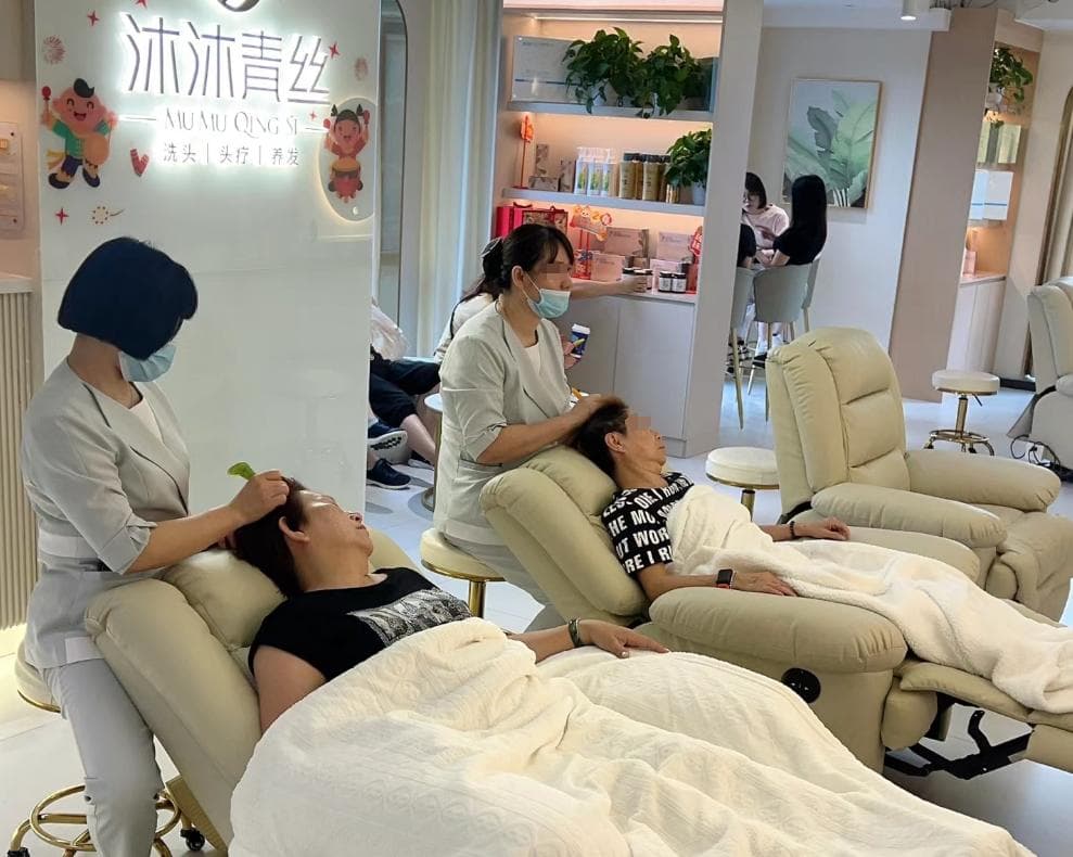 很多养发馆的技师在上岗前都会经过培训,通过专业的按摩手法刺激头皮不同部位,更好地促进血液循环,还能时不时开发点神奇功效。