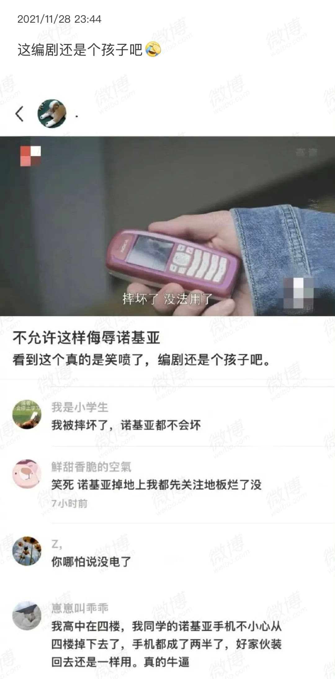 大家仔细一看,这不是诺基亚吗?诺基亚手机被踩坏,听着属实有点离奇,网友热评:这编剧还是个孩子吧......