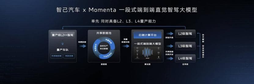 今年10月,上汽旗下智己汽车宣布,由智己联合Momenta所打造的IM AD智驾大模型已经率先完成从“最像人”到“有直觉”的断代式进化,智己汽车成为行业内首个同时具备L2、L3、L4级智能驾驶量产能力的品牌。