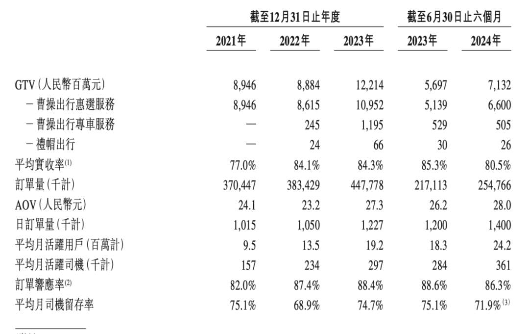 对于毛利增长,曹操出行的解释是市场需求增长;定制车车队不断扩大,公司减少了司机及乘客补贴措施;通过AI优化订单分配效率,运营时长也有增加。从2022年到2024年上半年,定制车GTV(总交易额)占总GTV的5.3%、20.1%及26.4%。目前曹操出行拥有全国最大的定制车车队,覆盖83个城市,月活用户近2000万。