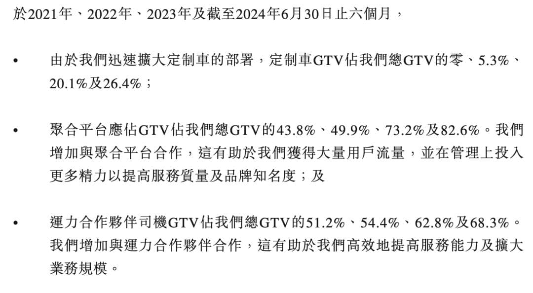 根据招股书中的数据,2021年、2022年及2023年以及截至2024年6月30日止六個月,来自聚合平台的订单分别占整体GTV的43.8%、49.9%、73.2%及82.6%。