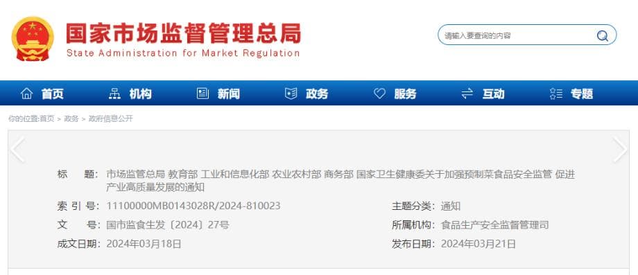 今年 3 月,我国有关部门在《关于加强预制菜食品安全监管促进产业高质量发展的通知》中,首次明确了预制菜的范围: