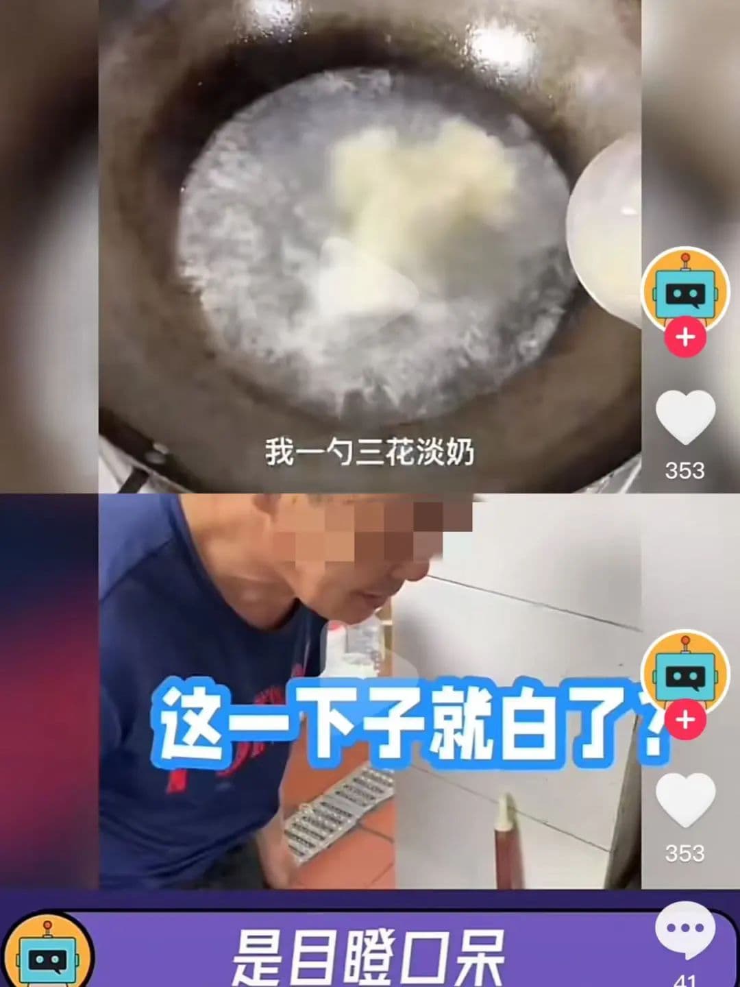 原本熬出奶白色的羊杂汤需要经过一系列复杂的流程以及相当长的时间,但是某博主只是加了一勺 “ 三花淡奶 ” ,就让开水秒变成了 “ 高汤 ” 。