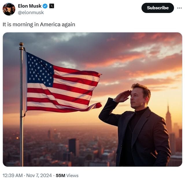 马斯克也十分识趣,在X平台上“刷火箭”,庆祝特朗普获选。