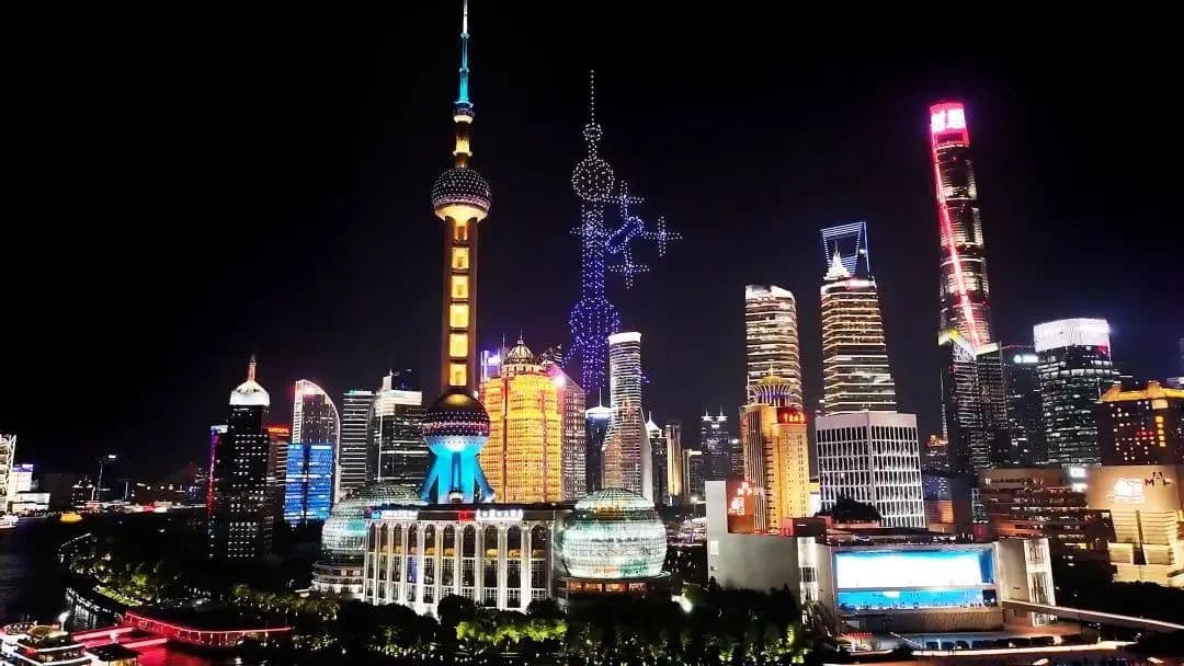 随后在黄浦外滩,由1000架无人机在夜空中拼出多个炫酷造型,引来众多群众的打卡拍照。表演中,无人机还配备了彩色LED灯,随着音乐节奏变化,形成动态的光影效果。