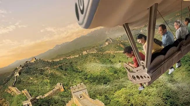 上海迪士尼乐园的“飞跃地平线”(Soarin' Over the Horizon)是全球飞行影院的经典之作,也是上海迪士尼园区内最受欢迎的游乐项目之一。这一项目以其独特的沉浸式体验广受欢迎,游客们甚至戏称“体验5分钟,排队2小时”,足见其吸引力。