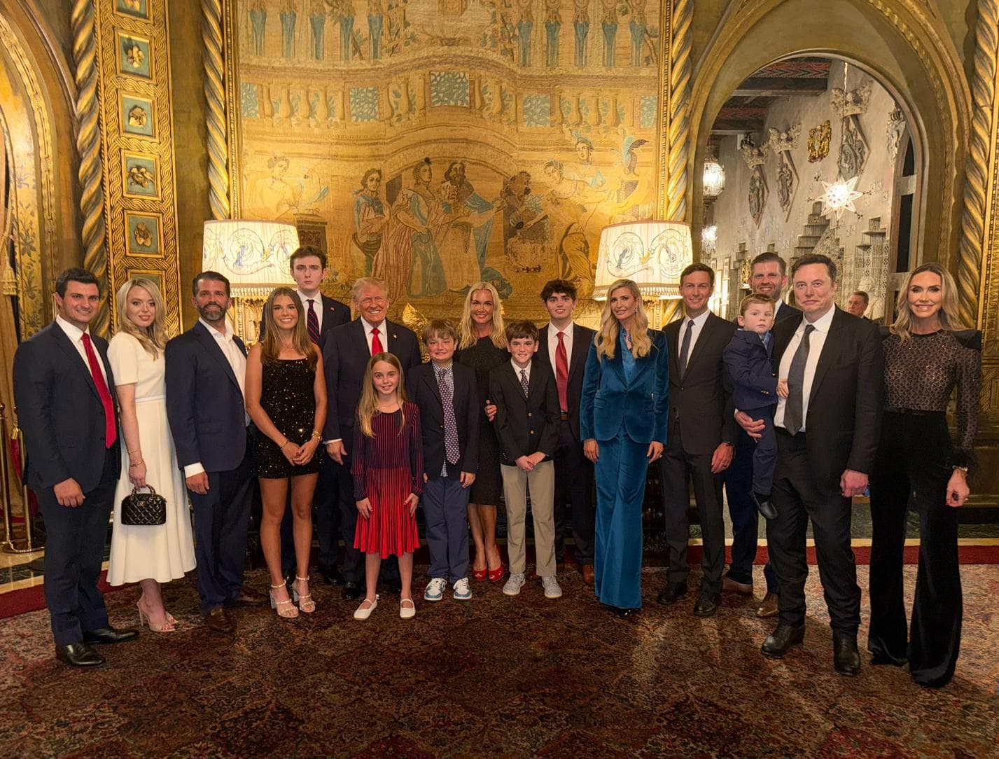 值得一提的是,特朗普孙女凯·特朗普也在网上发布了一张胜选团队合影,里面有特朗普、他的五个孩子,5个孙辈和马斯克父子。马斯克与特朗普家族关系如此密切,也引发了社交媒体的狂欢。