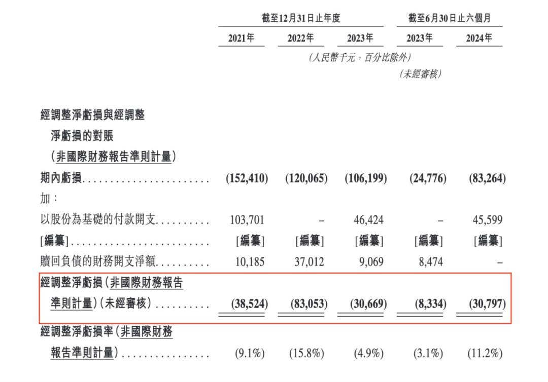 招股书显示,报告期内,健康160公司权益持有人应占亏损分别是1.515亿元、1.113亿元、1.088亿元及8207.8万元;经调整净亏损分别为3852.4万元、8305.3万元、3066.9万元和3079.7万元。