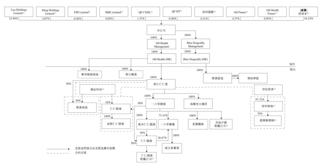 招股书显示,上市前,罗宁政通过Luo Holdings Limited持有健康160公司33.99%的股份。此外,启赋资本创始人傅哲宽持股17.07%。基石资本持股6.49%,分享投资持股4.21%,清科实体持股1.26%。
