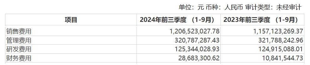 即便如今出现了营收、利润双降的问题,公司仍然不吝啬在营销上的花费。2024年前三季度,公司的销售费用高达12.07亿元,同比增长4.27%。
