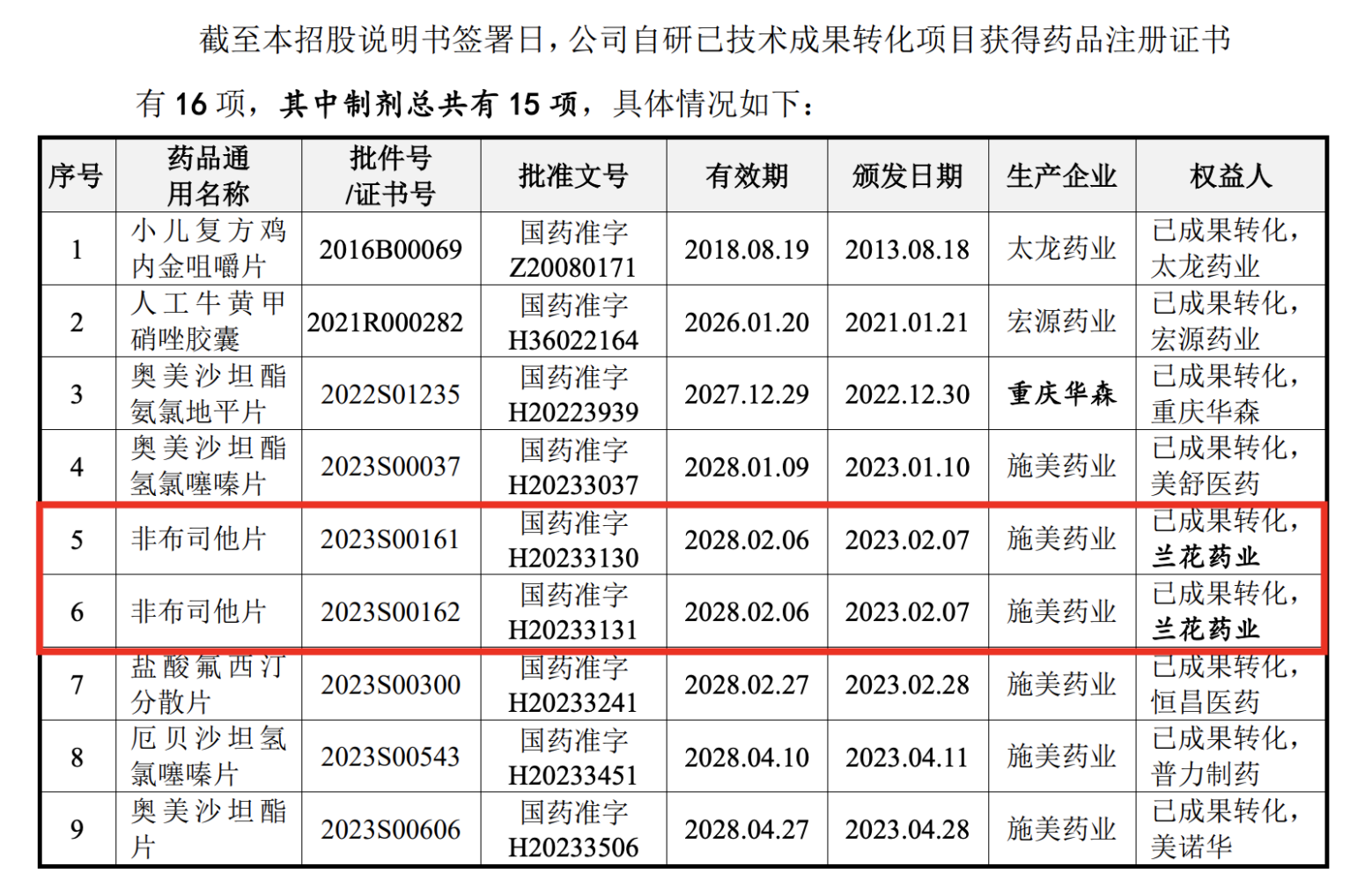 记者在翻阅最新招股书发现,对于同济医药上诉有关未变更MAH权益的情形在其他权益人身上存在相同情况,与招股书披露信息或为不符。公司在招股书中表明,2项非布司他片的药品注册证书权益人已转为兰花药业,磷酸奥司他韦颗粒已转换成诺泰生物,碳酸镧咀嚼片已转换成广东希黛。但上述4项相关信息与国家药品监督管理局披露的却不一致,截至目前,4项药品的权益人均如上图所示,仍为施美药业。公司未变更MAH权益的情形或不止一次。