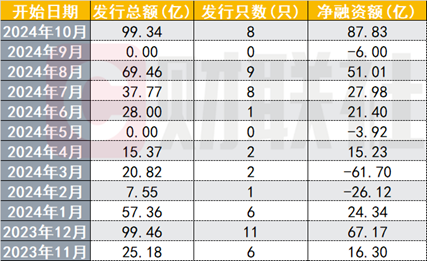 财联社此前报道过,受去年11月沪深交易所优化再融资政策的影响,上市公司利用可转债再融资受到限制。今年转债的供给明显萎缩,5月和9月已两次出现单月转债零发行的情况。今年前三季度,转债总计仅发行29只,融资236.34亿元。而2023年同期,已发行转债113只,金额1233.57亿元。