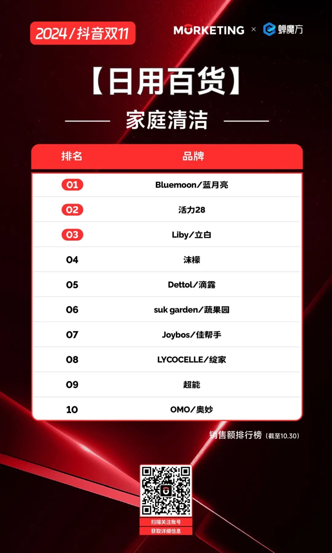 抖音双11战报榜单:11个大类,40+小类,谁夺榜首?谁掉队?