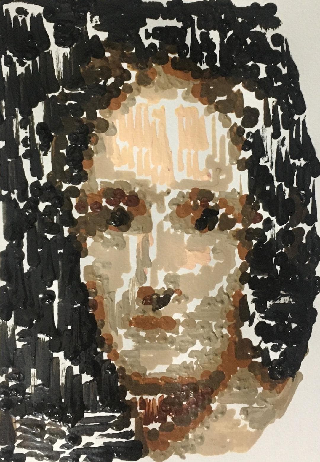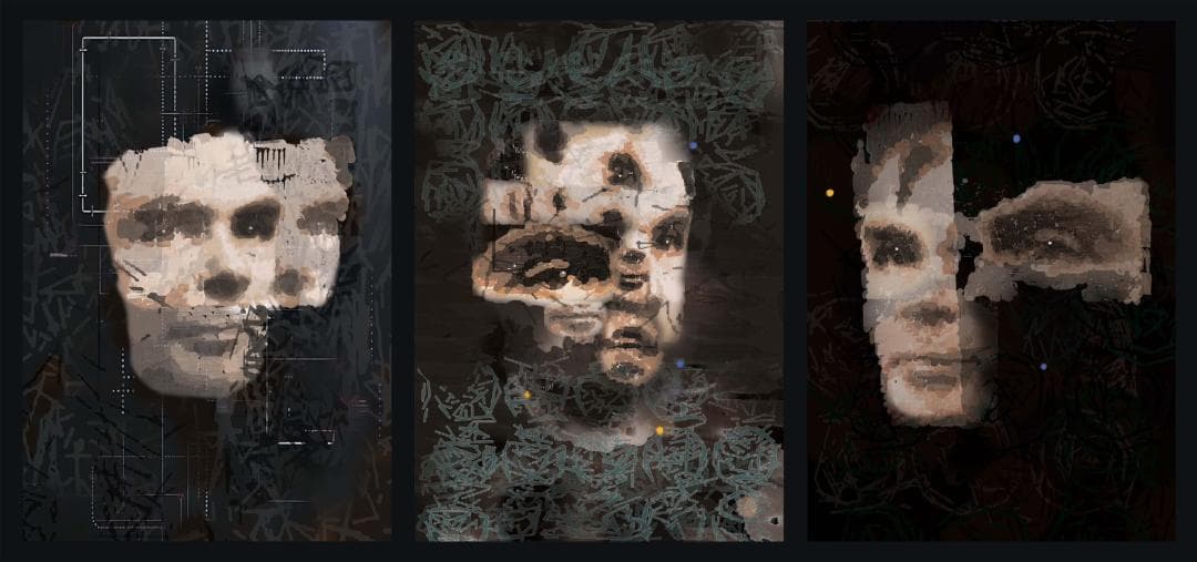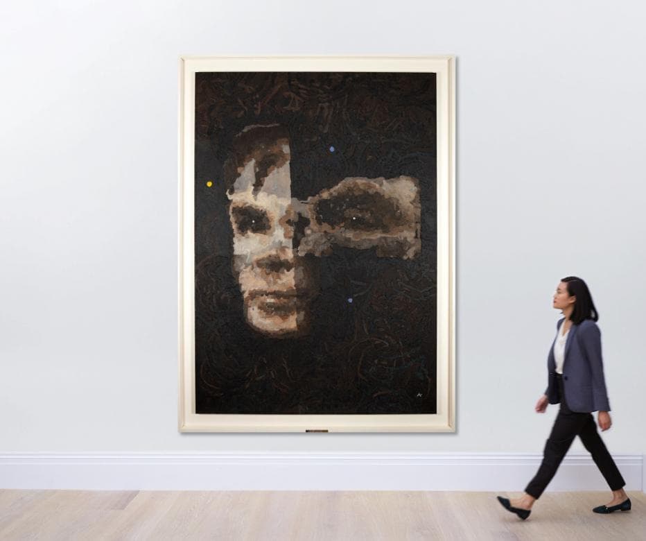作品看起来有些抽象,但据介绍,画面柔和色调和破碎的面部线条暗示了图灵所警告的人工智能监管挑战。