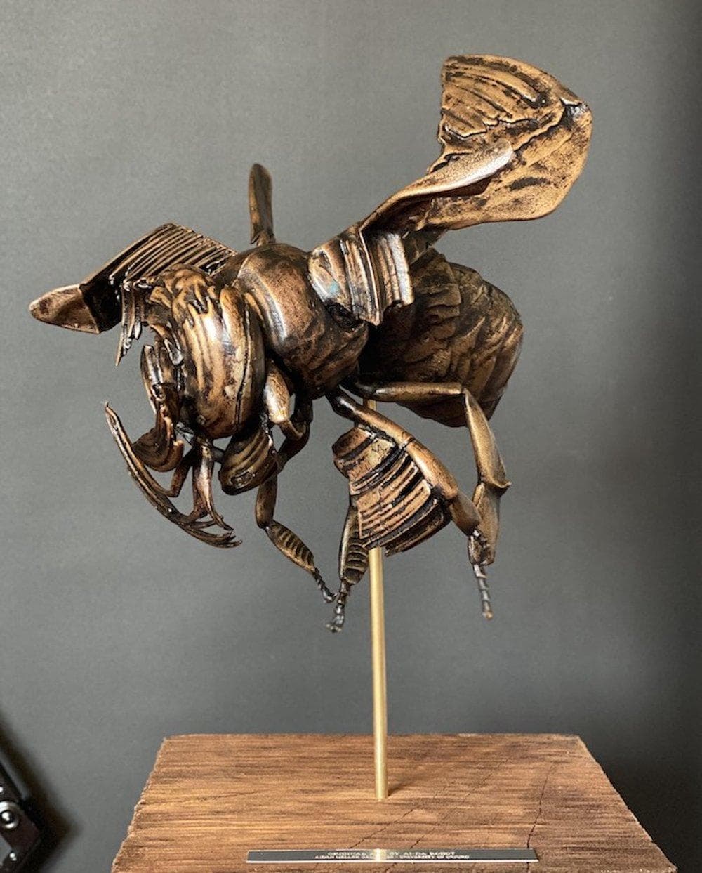 其中那些雕塑作品也是根据它所绘的「星座线条图」后期人工加工而成的 —— 由瑞典的一位计算机科学家从她的绘画中渲染出形象轮廓,再用蜡打印 3D 模型,最后用青铜铸造。