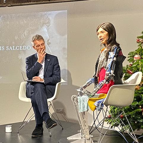 2022 年 10 月,Ai-Da 跑到了英国上议院进行辩论,也成了第一个在上议院发言的人形机器人。