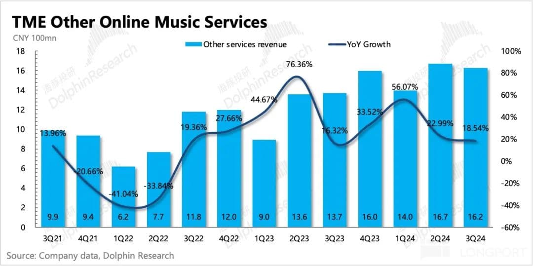 最终在线音乐收入同比增长 20.4%,环比有所放缓。订阅收入的增长持续性是这两年资金对腾讯音乐认可的主流故事,因此当用户增长看到平台期后,对估值的影响自然不会小。关注电话会上管理层对明年的增长指引,政策环境变化后,是否会相对积极一些?
