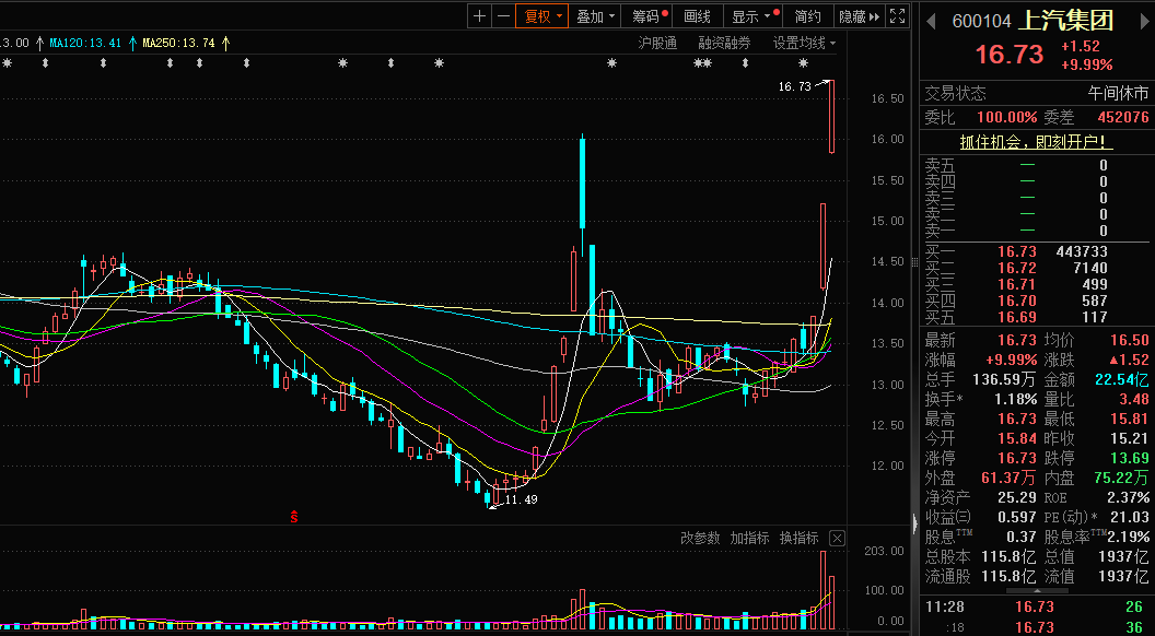 财联社11月13日讯,今日早盘,上海国企改革概念掀涨停潮,截至午间收盘,上汽集团2连板,上海物贸、上海建科等多股涨停。