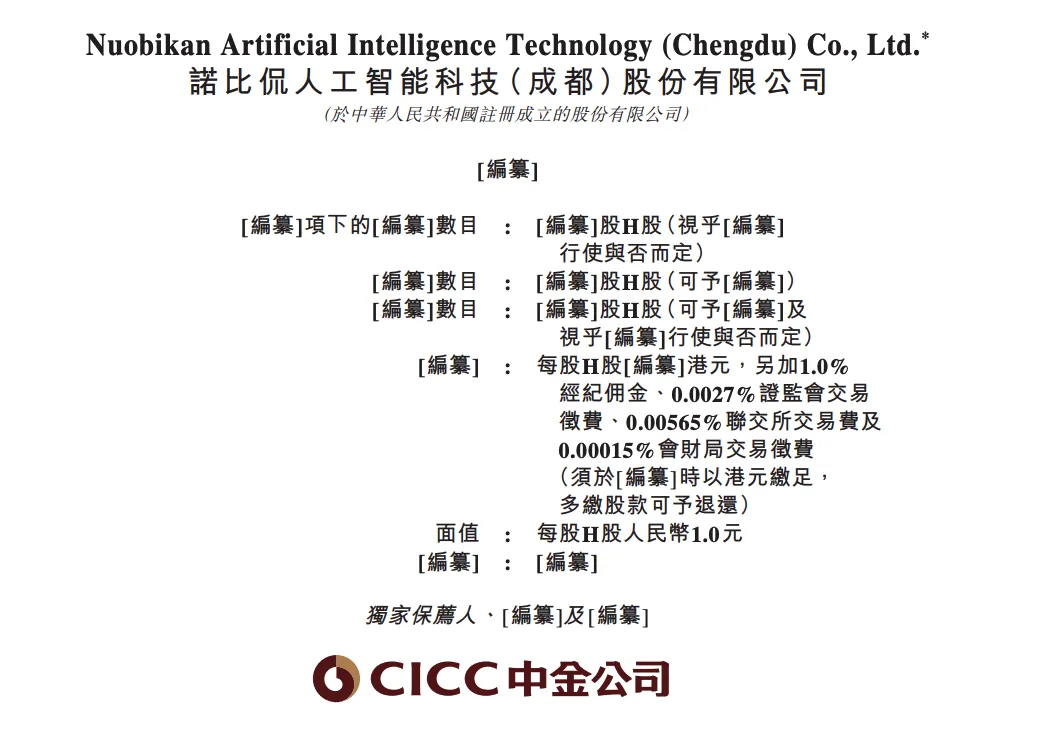 财联社11月13日讯(编辑 冯轶)11月12日,诺比侃人工智能科技(成都)股份有限公司向港交所主板提交上市申请书,中金公司为独家保荐人。