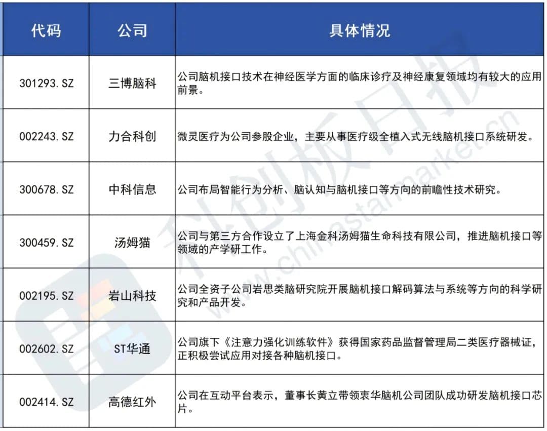 据《科创板日报》不完全统计,A股中已布局脑机接口的公司有: