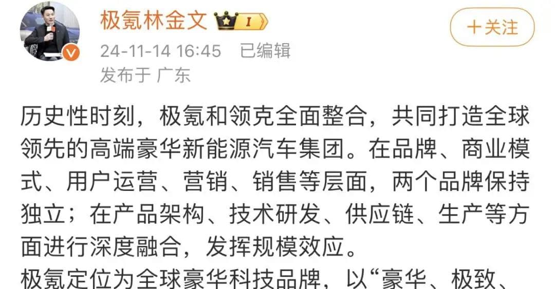 刚刚,极氪和领克正式合并,高管:历史性时刻
